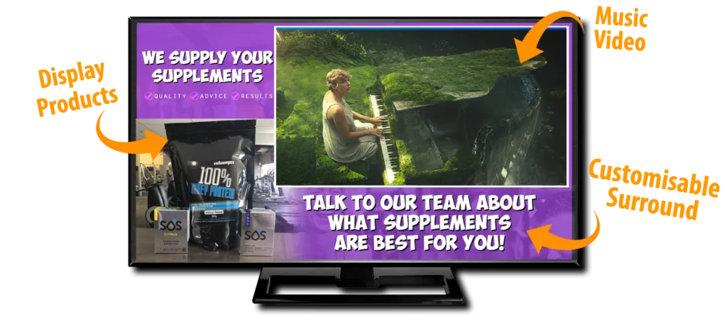 Keep your members focused on your offerings — not the fast‑food ads competing for their attention. Turn your TVs into powerful in‑house marketing tools that promote the products and services that actually grow your revenue: premium classes, personal training packages, supplements, merchandise, recovery services, and upcoming events.